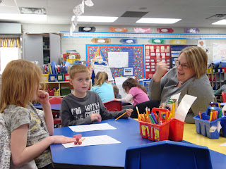 Mrs. Kostynick sees me peeking in the window, and comes to the door. "Come on in!" She invites me. "We're having an exciting day. We're just getting started on writing some poetry of our own." I take her up on the invitation and step in.